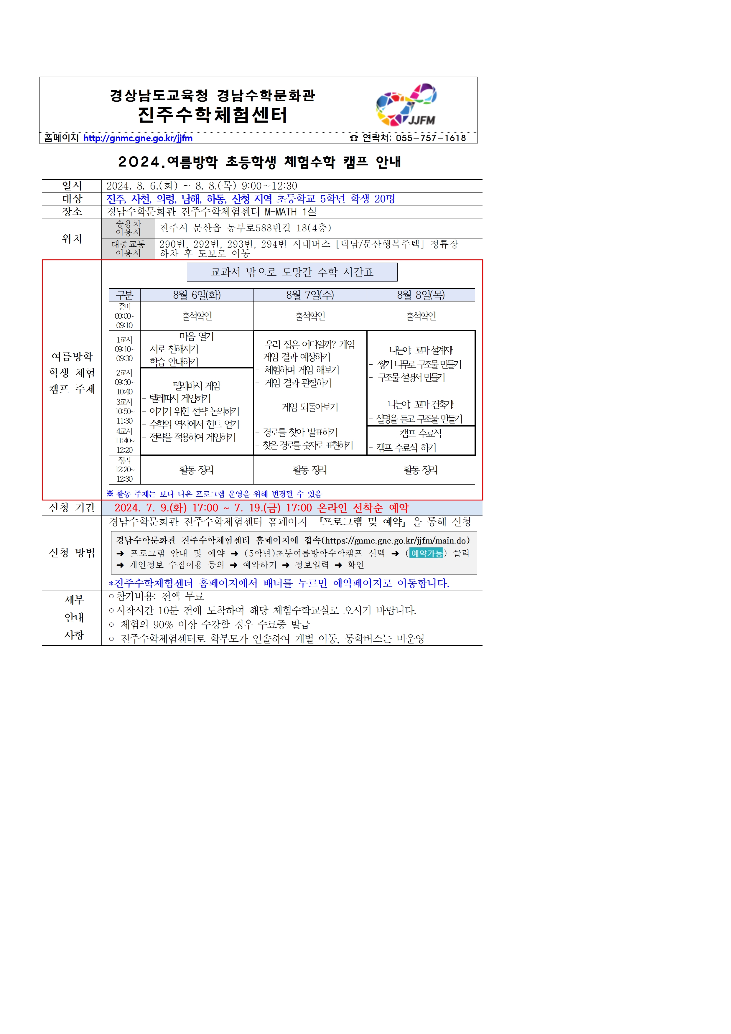 2024. 여름방학 초등학생 체험수학 캠프 안내