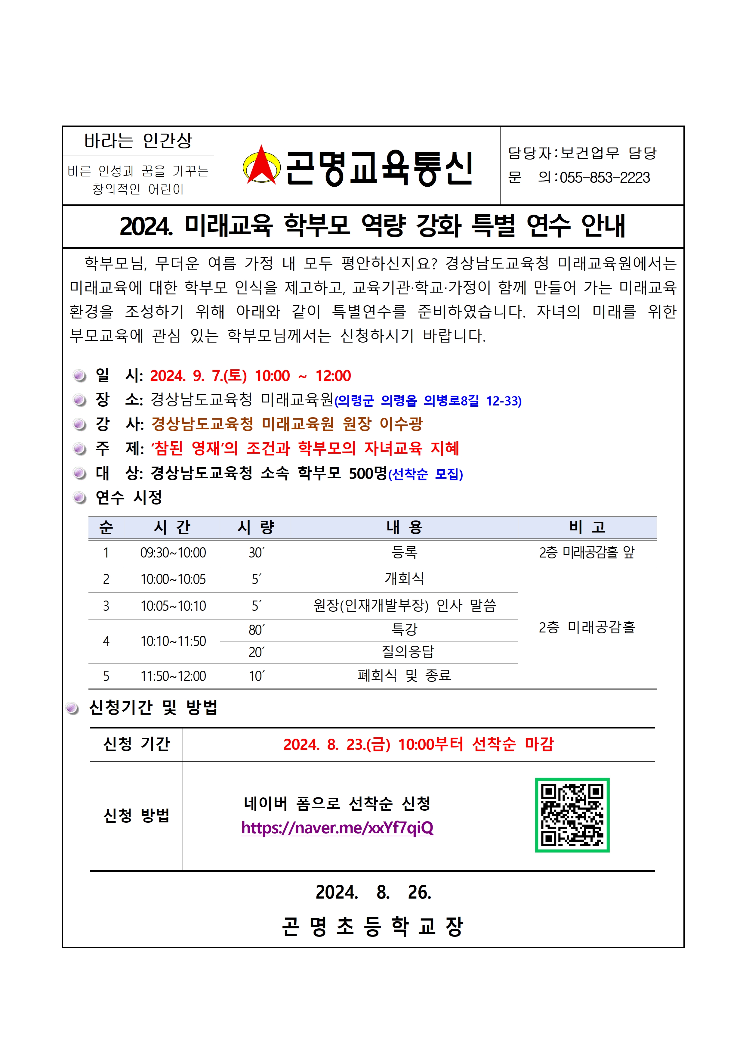 2024. 미래교육 학부모 역량 강화 특별 연수 안내