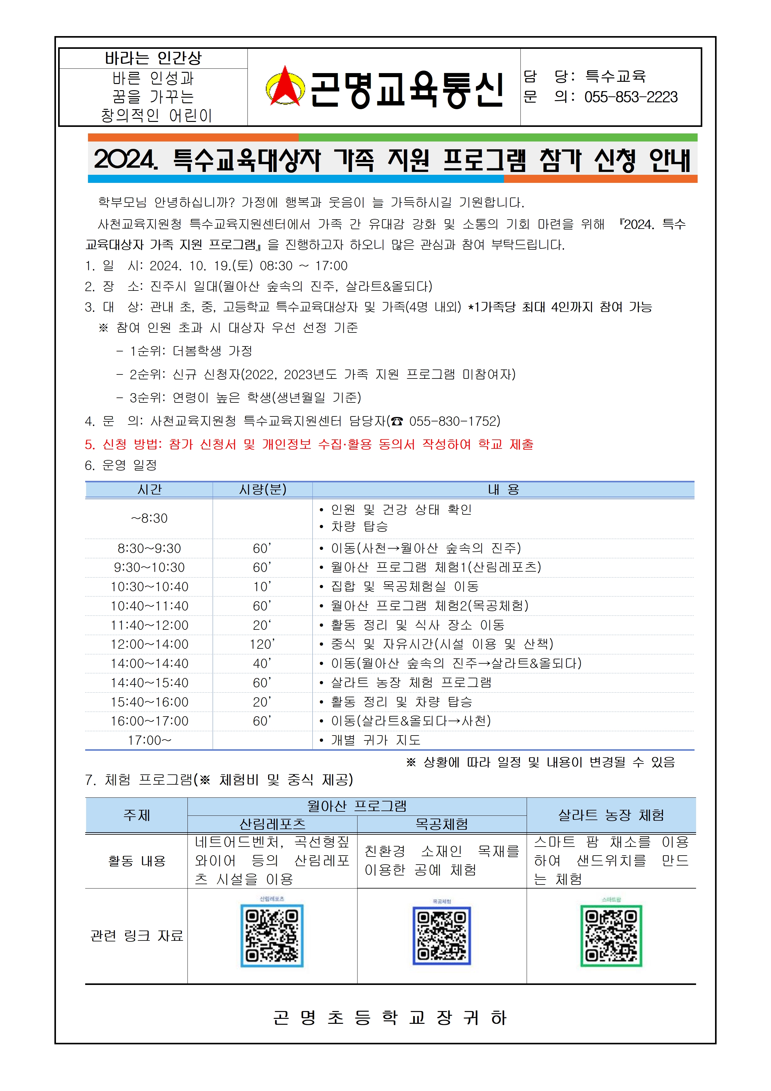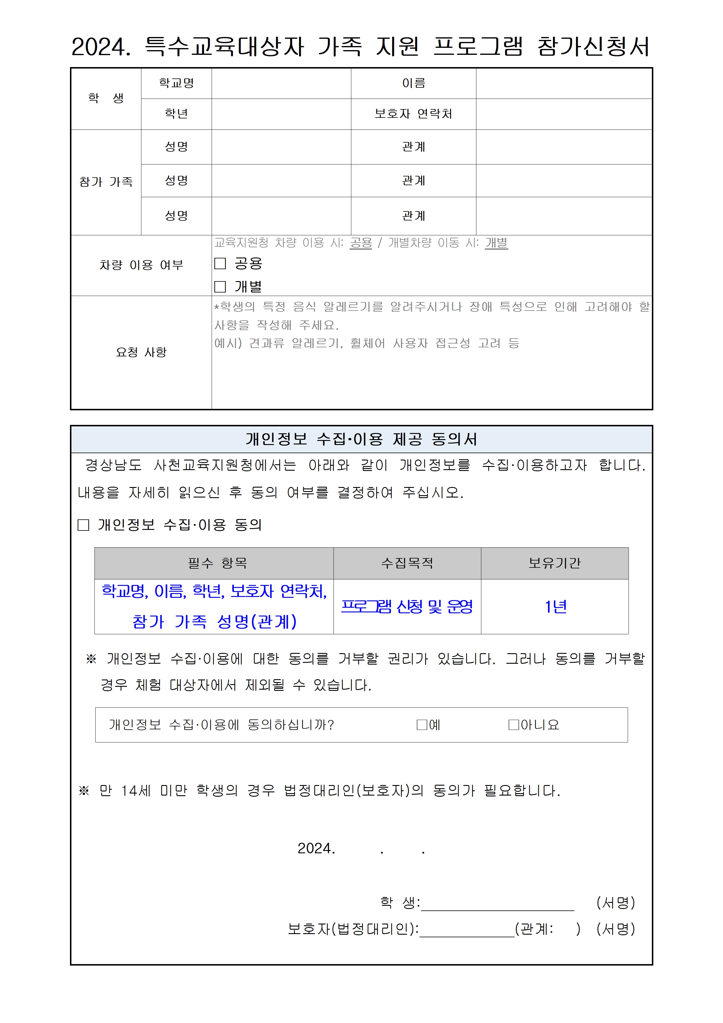 2024.특수교육대상자 가족 지원 프로그램 참가 신청 안내
