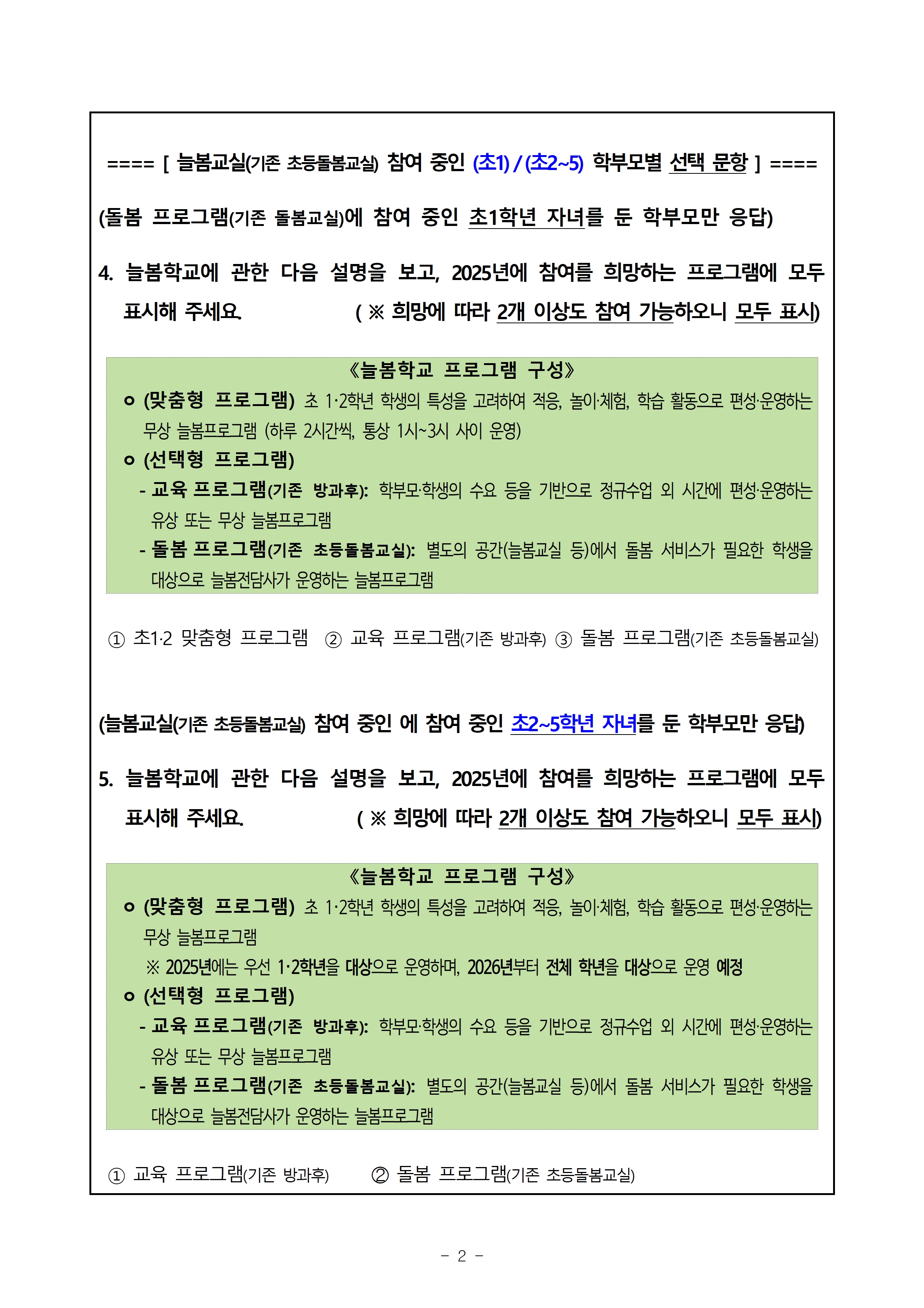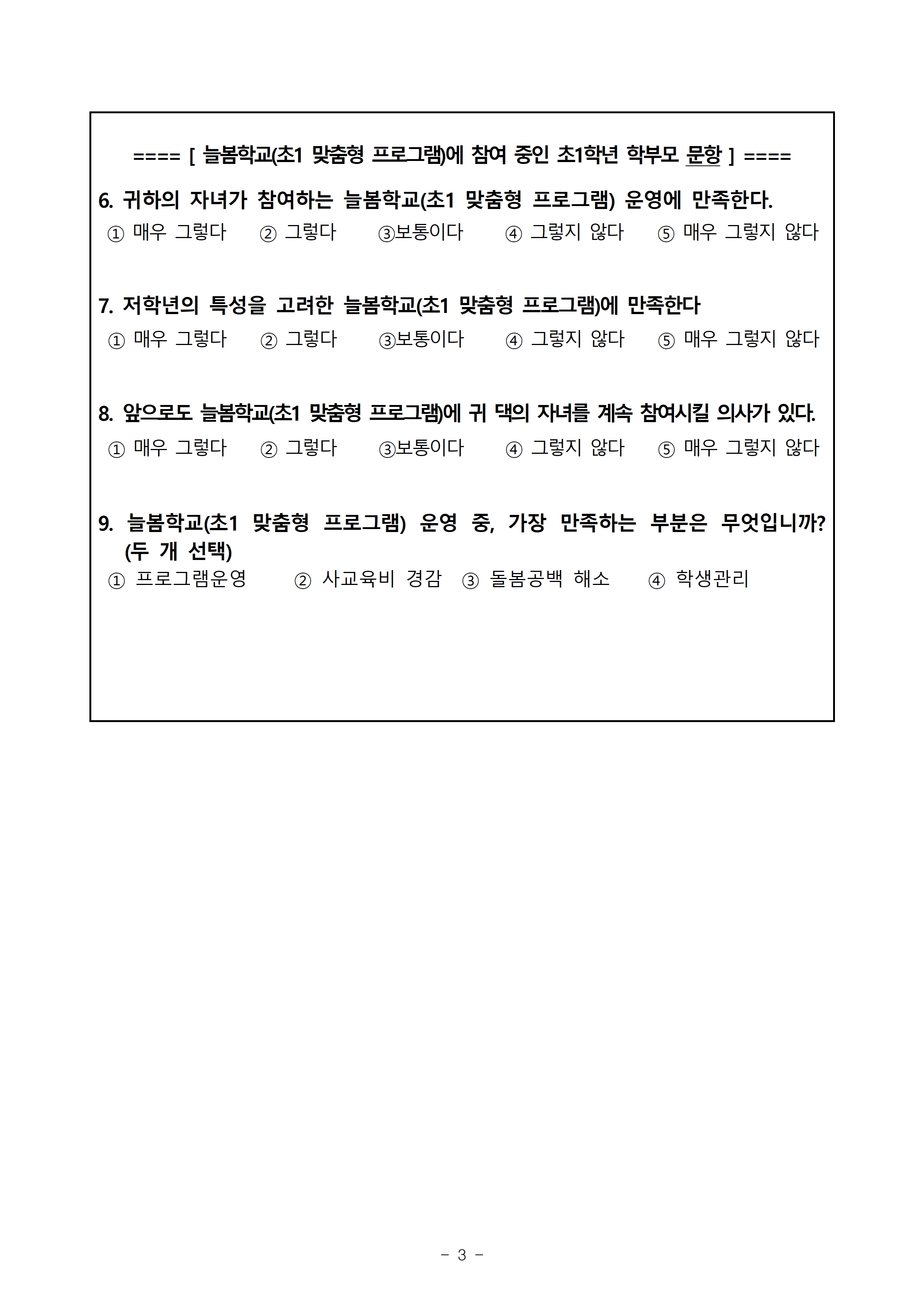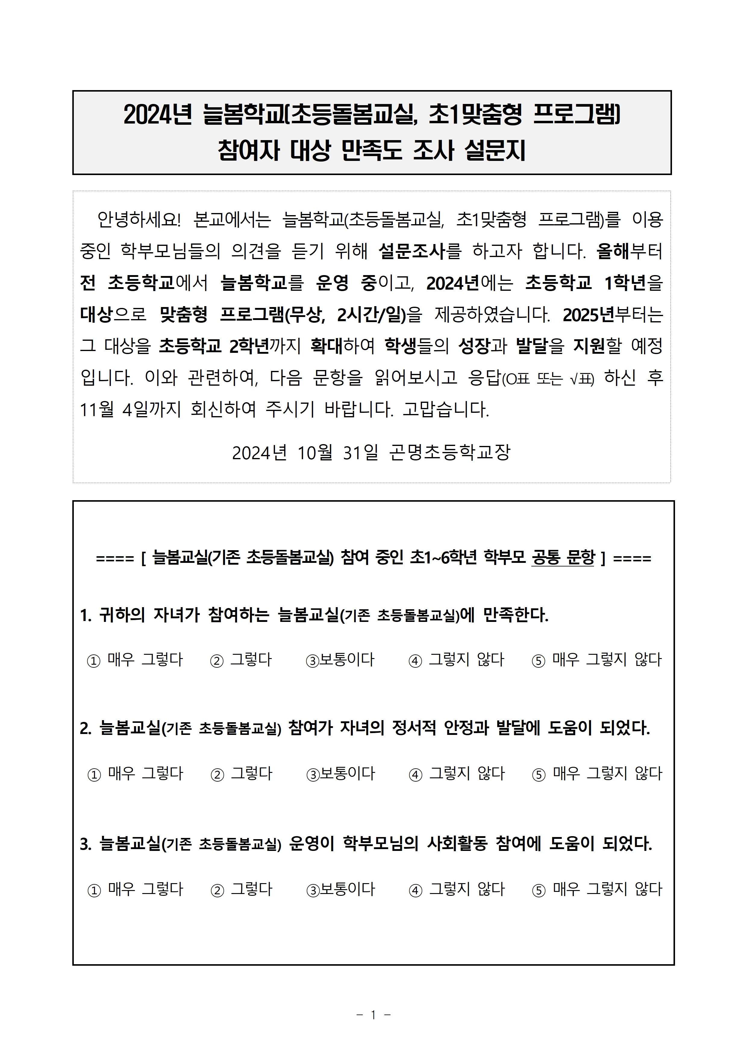 2024년 늘봄학교(초등돌봄교실, 초1 맞춤형 프로그램) 참여자 대상 만족도 조사 설문지